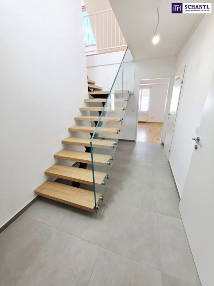 Ihre neue Wohnung im Dachgeschoss mit Fern- und Traumblick wird Sie restlos begeistern und teilt sich auf der 1.Ebene in einen geräumigen Vorraum mit Platz für eine Garderobe und Stauraum unter der Treppe zur 2.Ebene, ein schönes Badezimmer mit Badewanne und Waschmaschinenanschluss, ein separates WC, einen praktischen Abstellraum sowie ein geräumiges und gemütliches Schlafzimmer.