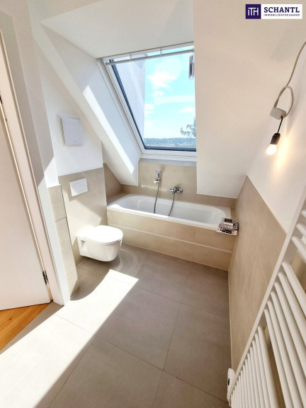 Auf der 2.Ebene erwartet Sie ein weiteres Schlafzimmer, ein 2.Badezimmer mit Fenster, 2.WC und Badewanne, ein kleiner Abstellraum sowie eine Galerie mit Zugang zu einer 2.Terrasse mit Blick auf Schloss Schönbrunn und die Gloriette.