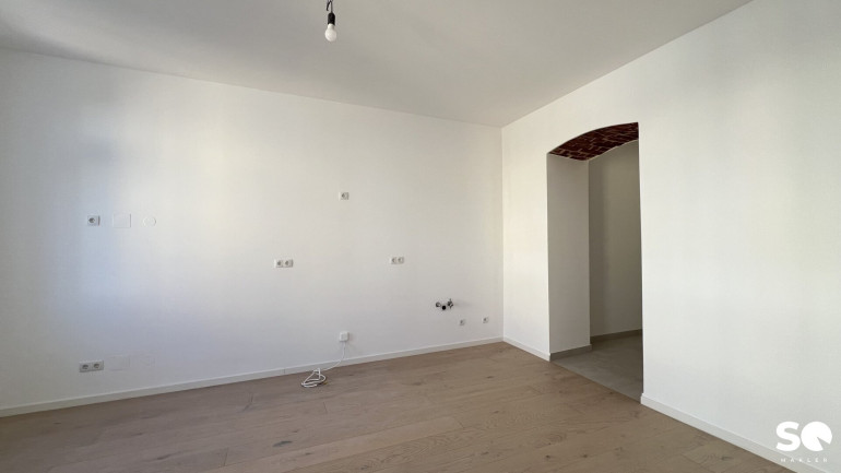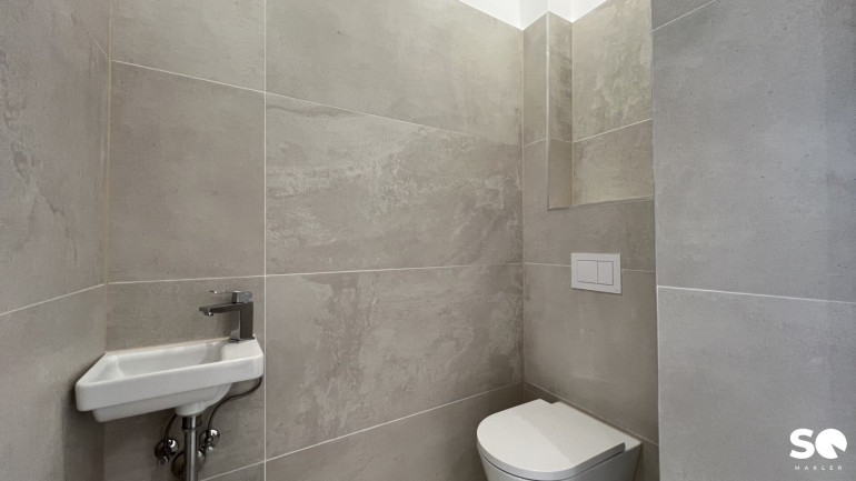 Das Badezimmer ist mit einer modernen Badewanne, Waschmaschinenanschluss, WC und Handwaschbecken ausgestattet. WC ist vom Vorraum begehbar und separat. Dank neuer Fenster genießen Sie angenehme Lichtverhältnisse und ausgezeichnete Wärmedämmung, während Sie den Altbaucharakter in vollen Zügen erleben können.