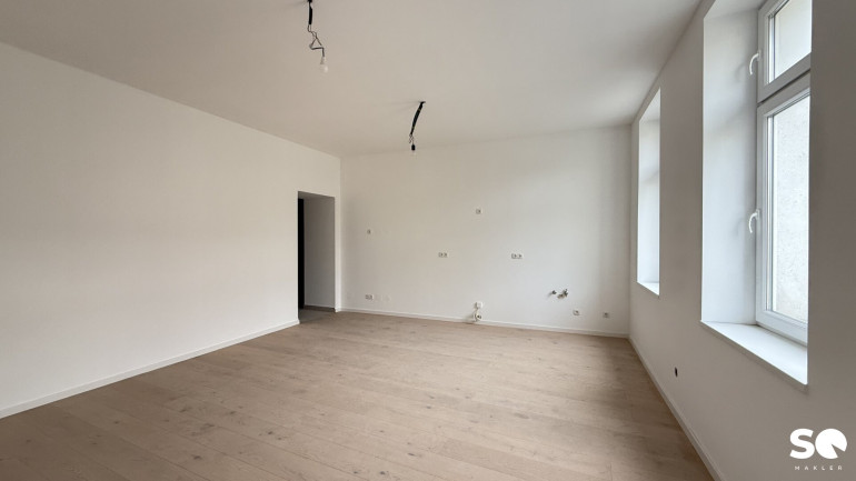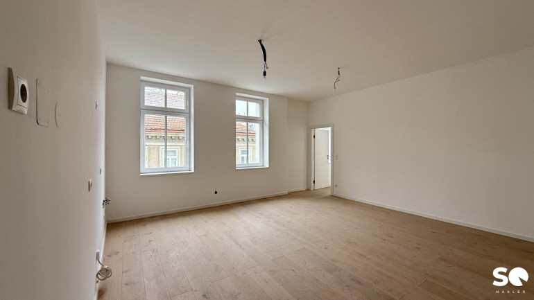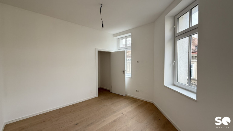 Das Badezimmer ist mit einer modernen Dusche, Waschmaschinenanschluss als auch Waschbecken ausgestattet. Ein separates WC befindet sich im Vorraum. Es erwarten Sie eine großzügige Wohnküche als auch ein eigenes Schlafzimmer. Dank neuer Fenster genießen Sie angenehme Lichtverhältnisse und ausgezeichnete Wärmedämmung, während Sie den Altbaucharakter in vollen Zügen erleben können.