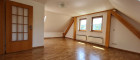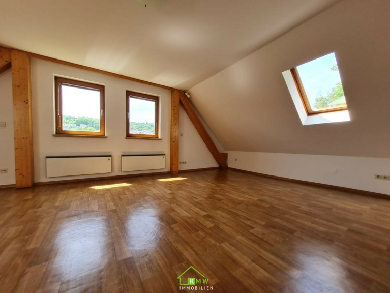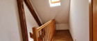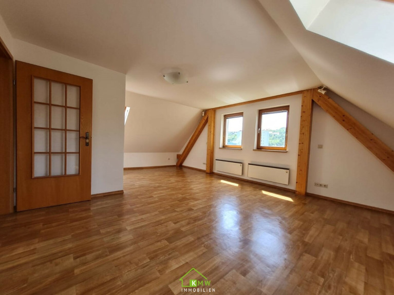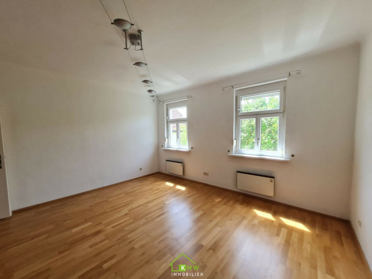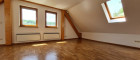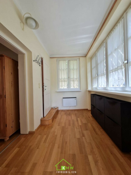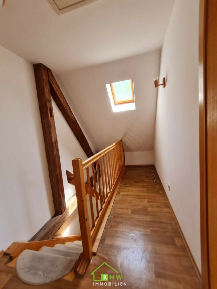 Über eine Holztreppe vom Vorraum aus gelangt man in das Obergeschoß mit einem weiteren großzügigen Zimmer, dass durch die teilweise freigelegten Holzbalken und Dachschrägen ein behagliches und gemütliches Flair bekommt. Auf dieser Etage gibt es eine Terrasse und einen Zugang zum Garten.