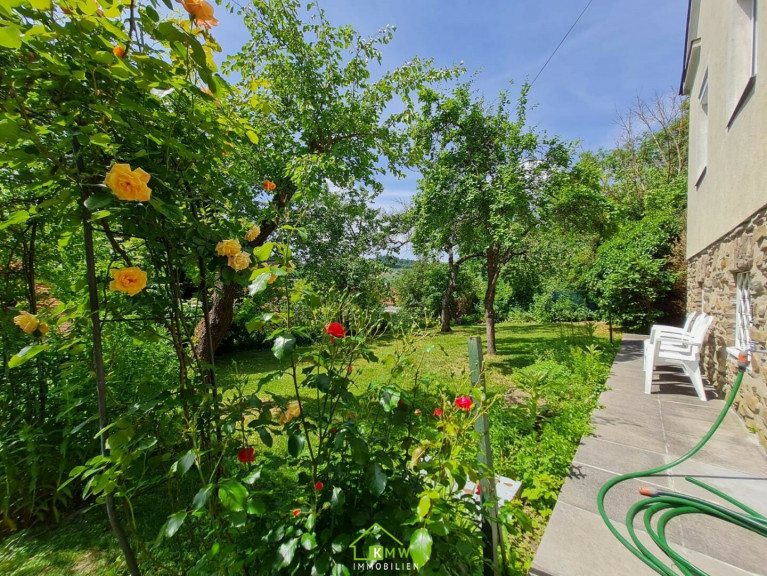 Im lauschigen Schatten der Marillenbäume und einzelner kleiner Kirschbäume des idyllischen ca. 600m² großen Gartens können Sie mit dem phantastischen Duft der Kletterrosen den Alltag hinter sich lassen.