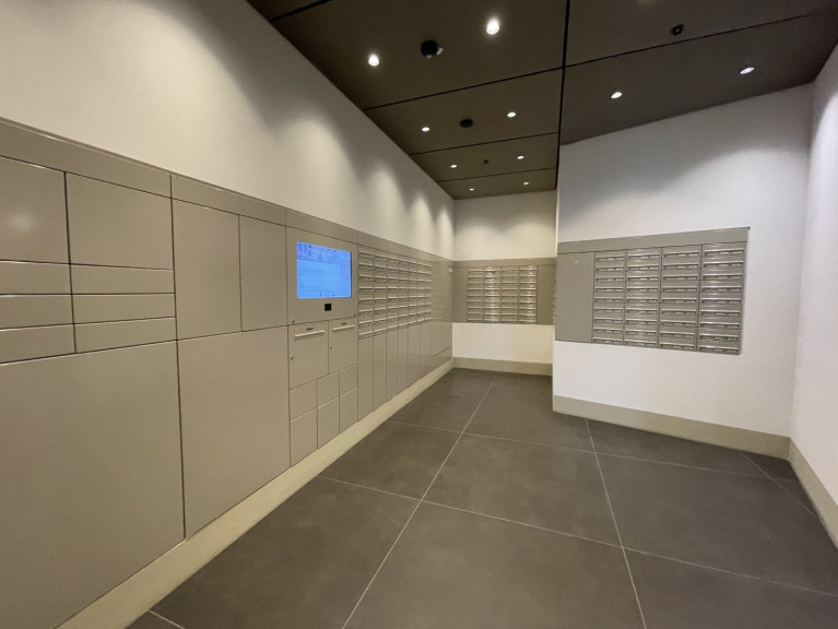 Erleben Sie eine erstklassige Wohnatmosphäre mit Annehmlichkeiten wie einem sicheren Fahrrad- und Kinderwagenraum, einem modernen Fitnessbereich und einem vielseitigen Eventraum. Die Lobby ist mit fortschrittlicher Kameraüberwachung ausgestattet und sorgt damit für höchste Sicherheit im Gebäude. Zudem machen die Renz-Box Paketempfangsanlagen im Eingangsbereich die Lieferungen sehr bequem.