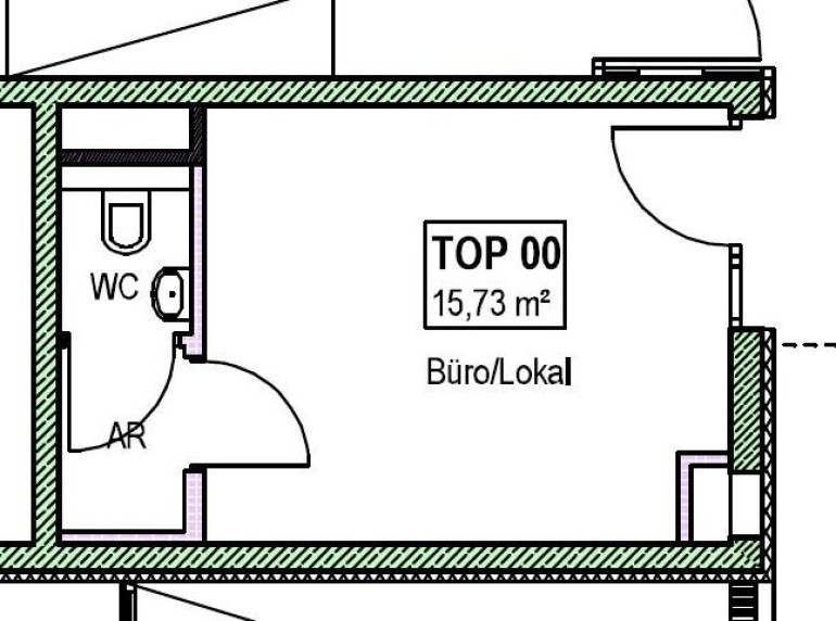 Das ebenerdig gelegene Lokal verfügt über eine Gesamtnutzfläche von 15,73 m² und teilt sich wie folgt auf: