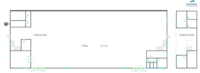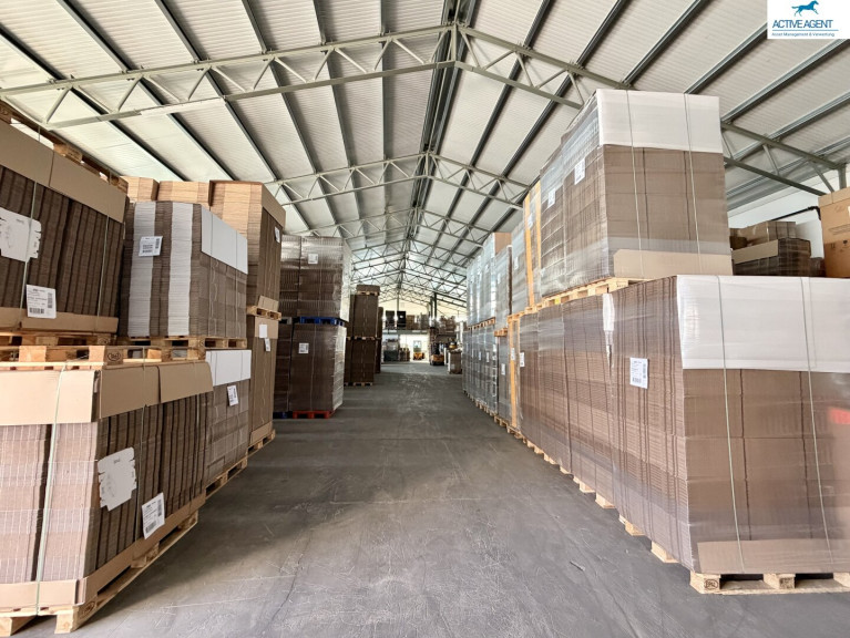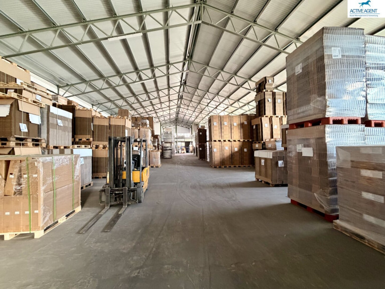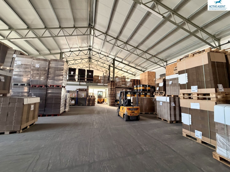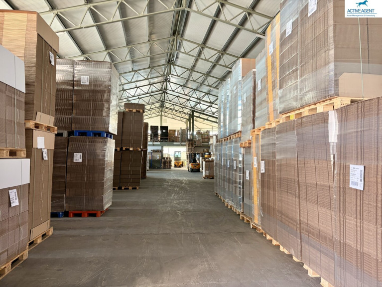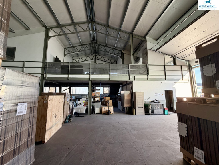 Mitunter schafft die Hallenhöhe mit über +6 Metern viele Möglichkeiten der Nutzung (Hochregallager). Die Nebenräume befinden sich auf der Galerie.