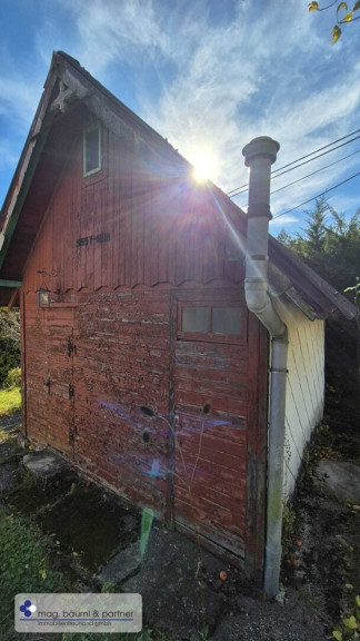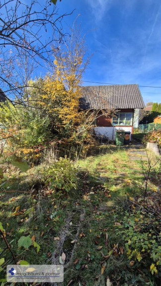 Diese Eckparzelle am Fusse des Wolfersberg hat ein kleines Holzgartenhäuschen als Altbestand.Es gibt einen Eingang durch die Kleingartensiedlung und einen weiteren mit eigener Parkmöglichkeit am unteren Ende der Eckparzelle .