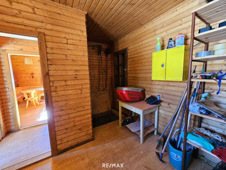 Auf dem Grundstück befindet sich bereits eine Gartenhütte mit ca. 28 m², die vielseitig genutzt werden kann – ob als Stauraum, Werkstatt oder gemütlicher Rückzugsort im Grünen.