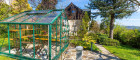 Ein großzügiges Glashaus bietet Platz für exotische Pflanzenliebhaber, während ein modernes Whirlpool zum Entspannen einlädt. Mehrere Gartenhäuser und lauschige Plätze schaffen Raum für Erholung, Hobbys oder Gäste. Der Garten ist vollständig uneinsehbar und somit ein Ort vollkommener Ruhe.