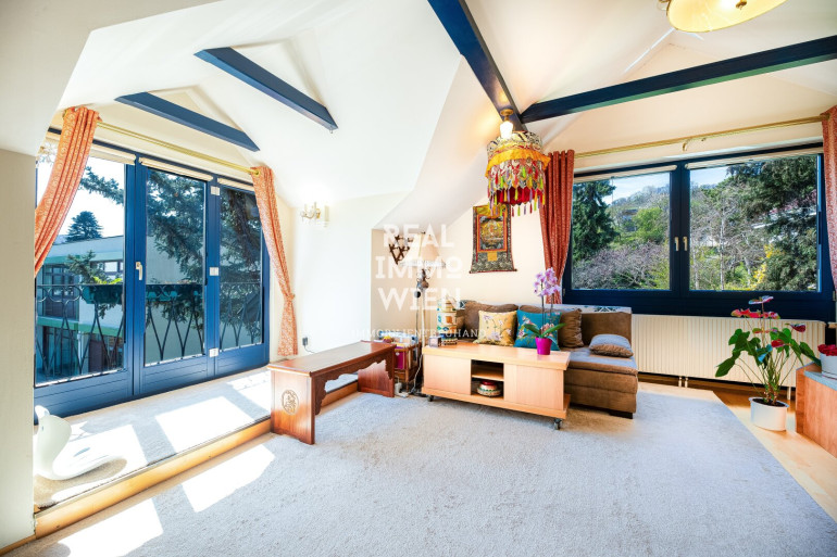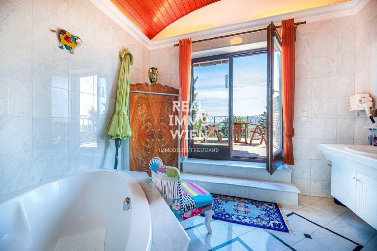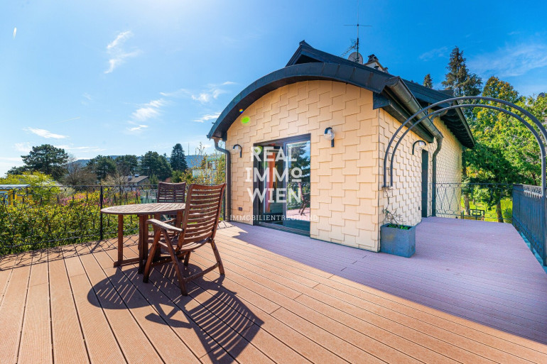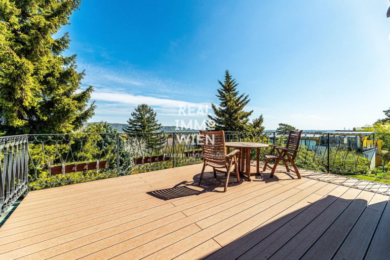 Von der Terrasse im Obergeschoss genießen Sie einen unvergleichlichen Ausblick: über Wien hinweg bis zum Stift Klosterneuburg und bei klarem Wetter sogar bis in die Tschechische Republik und die Slowakei. Sonnenaufgänge und -untergänge werden hier zum täglichen Naturschauspiel.