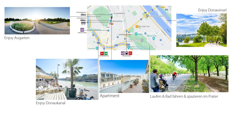 - U2 Taborstraße fußläufig (ca. 7 Gehminuten)