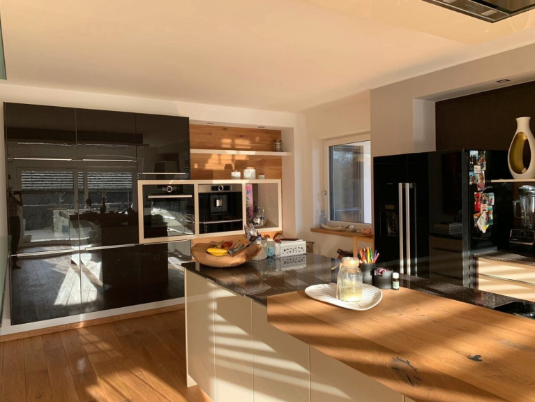 Das Wohnhaus verfügt über einen wunderschönen Garten, der zum Entspannen und Genießen einlädt. Hier können Sie im Sommer gemütliche Grillabende mit Freunden und Familie verbringen oder einfach nur die Sonne auf dem Balkon oder der Terrasse genießen. Die ursprünglich 1965 entstandene Gebäudehülle ist 2014 praktisch völlig entkernt, die Raumaufteilung neugestaltet und durch eine Terrassen- und Balkonanlage, einen separat angebauten Stiegenaufgang sowie zwei Gaupen im ebenfalls neu aufgesetzten Dachgeschoss erweitert worden. Entstanden ist ein neuwertiges modernes Wohnhaus mit großzügigen lichtdurchfluteten Wohnräumen. Die offene Wohnküche mit Einbauküche ist der perfekte Ort, um gemeinsam mit Ihren Liebsten zu kochen und zu essen. Durch die großen südwestlich ausgerichteten Fensterfronten gelingt viel Licht in die Räume und es bietet sich ein herrlicher Ausblick auf die umliegende Bergwelt.