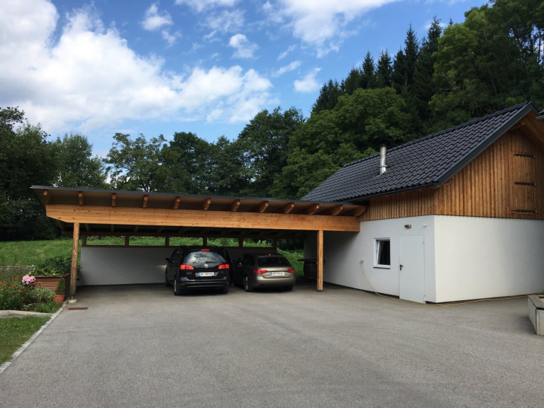 Ein großer Vorzug ist die Ruhelage in Kombination mit einer unverbaubaren Panoramafernsicht die sich, insbesondere von der überdachten Terrasse im Erdgeschoss oder der Balkonanlage im Obergeschoss, hervorragend genießen lässt. Gleichzeitig ist das Gelände um die Hofstelle herum zum Großteil nahezu ebenerdig bzw. in leichter Hanglage und liegt lediglich ca. zehn Autominuten von der umfassenden Infrastruktur der Bezirksstadt Spittal an der Drau entfernt. Die eigene großzügige Zufahrt verfügt über hinreichend Stellplätze. Ein Carport für ca. drei PKW befindet sich zwischen dem Wohn-/ und Heizgebäude, in dem sich die Hauseigene Hackschnitzelheizanlage befindet.