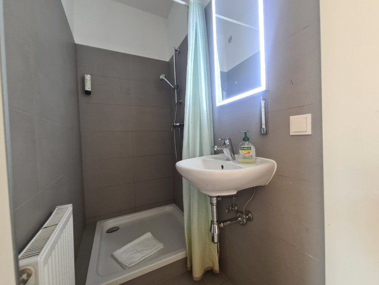 Vorzimmer mit Essplatz, Einbauküche, 1 Zimmer, Bad mit Dusche, extra WC