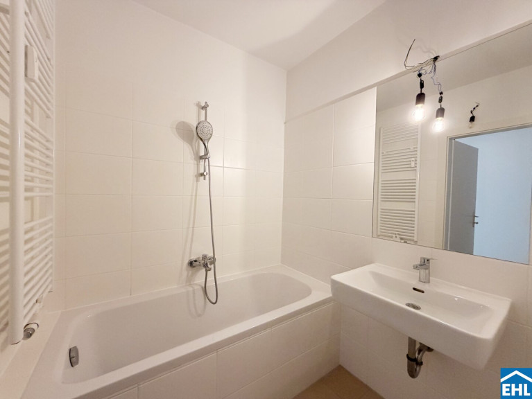 - Badezimmer mit Badewanne und Waschmaschinenanschluss