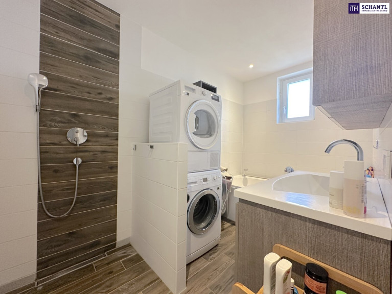 Zwei Abstellräume sorgen für zusätzlichen Stauraum, während Bad und WC getrennt voneinander gestaltet sind – ideal für den Alltag.