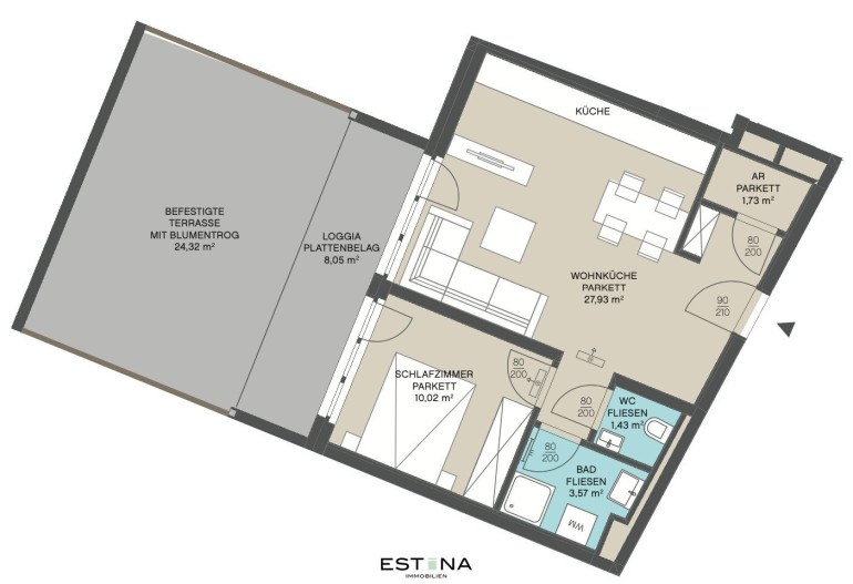 - geräumige Wohnküche mit Zugang zur Loggia/Terrasse