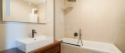 - Badezimmer mit Badewanne, Waschbecken und WM-Anschluss