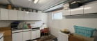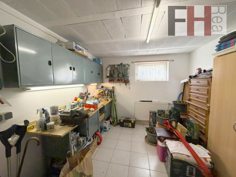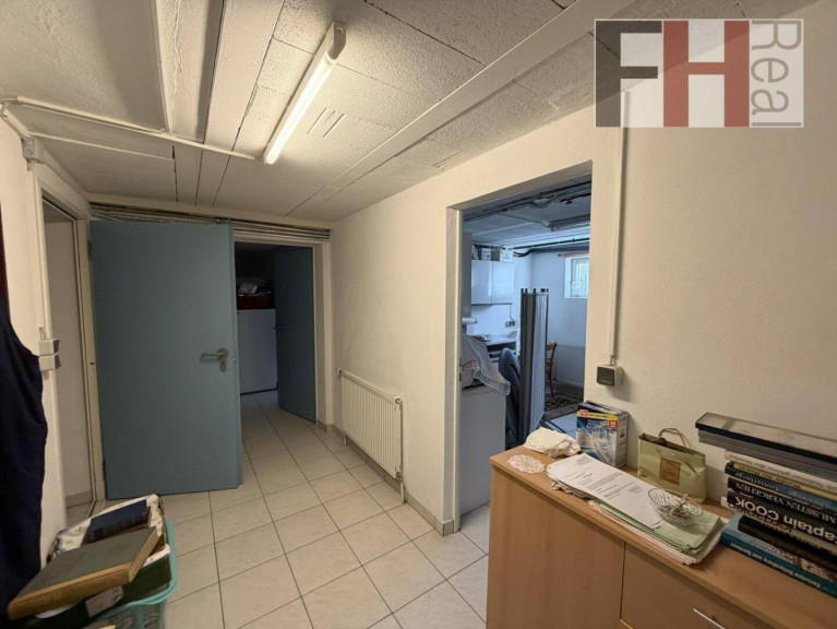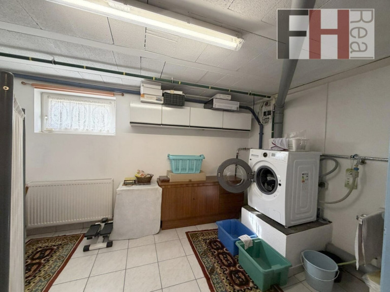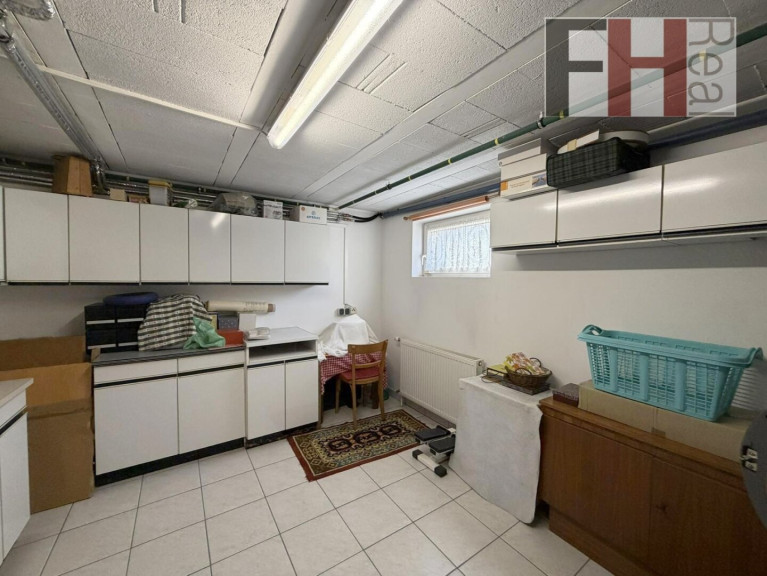 Das Kellergeschoß bietet besonders viel Stauraum wie auch Platz für die Technik. Geheizt und warmwasserversorgt wird mit einer Gastherme, der Specksteinkamin liefert zusätzlich Wärme bis in das Obergeschoss. Ein zentrales Staubsaugersystem erleichert die Hausarbeit.