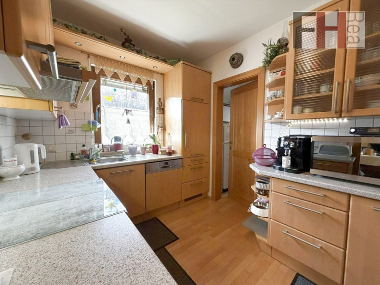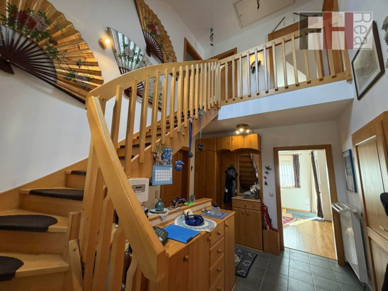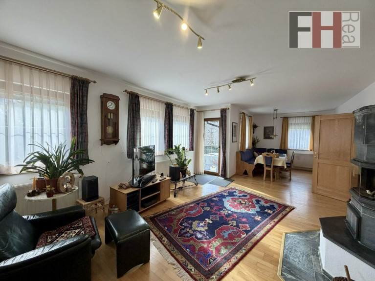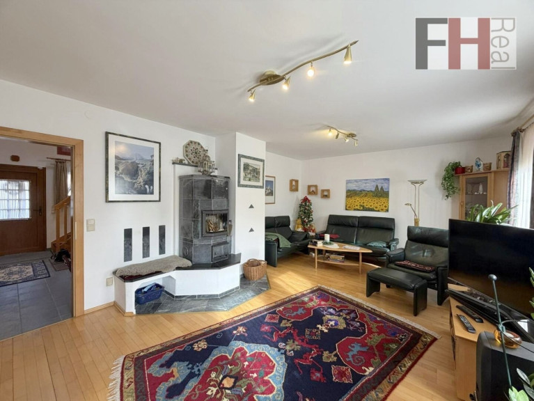 Das voll unterkellerte Einfamilienhaus von Haas wurde im Jahr 1999 errichtet, bietet 3 Ebenen und hat eine gesamte Wohnnutzfläche von mehr als 200m², wovon mehr als 135m² auf die beiden Wohngeschosse entfallen. Das Haus verfügt über insgesamt 5 Zimmer, die alle geräumig und lichtdurchflutet sind. Im Erdgeschoss ist die offene Gestaltung des Wohn-/Essbereichs und besonders das einladende Ambiete hervorzuheben. Die großen Fenster lassen viel Licht herein und bieten einen herrlichen Blick auf die umliegende Landschaft und in den Garten. Hier können Sie entspannen und die Aussicht genießen, während Sie sich in den Wintermonaten an der Wärme des großen Specksteinkamins erfreuen. Die vollausgestattete Küche, mit angeschlossener Speis, liegt gleich nebenan und ist idealerweise vom Ess- und Wohnzimmer erreichen. Auf dieser Ebene befindet sich weiters ein Schlafzimmer, welches natürlich ein perfekter Platz für Homeoffice ist, der großzügige Vorraum und ein Badezimmer mit Dusche und WC.