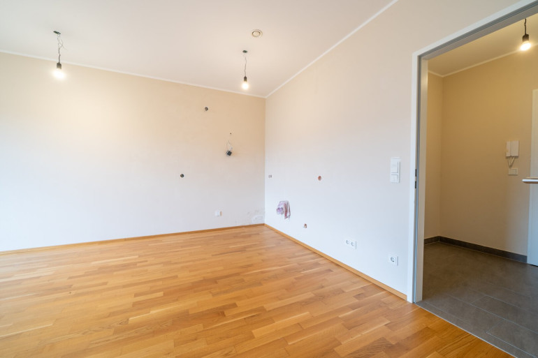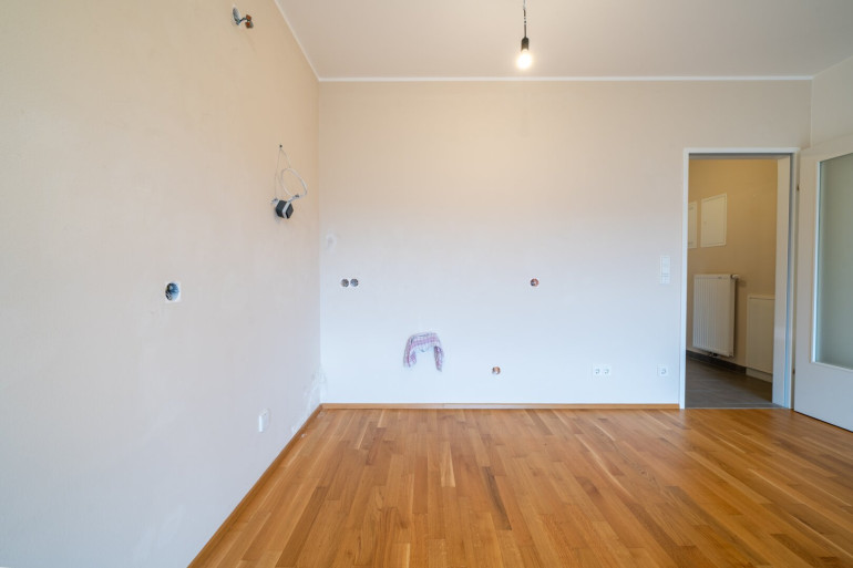 Bereits beim Betreten empfängt Sie eine angenehme, warme Atmosphäre. Der helle Wohnbereich überzeugt mit stilvollem Design und hochwertigen Parkettböden. Die Kochnische fügt sich harmonisch in den offenen Wohnraum ein und schafft ein modernes, einladendes Wohngefühl. Von hier aus gelangen Sie direkt auf den sonnigen Balkon – ideal, um den Alltag hinter sich zu lassen und die Seele baumeln zu lassen.