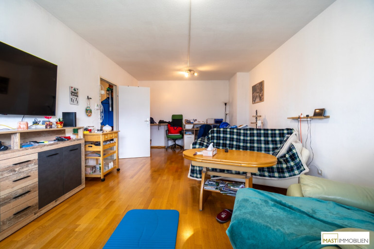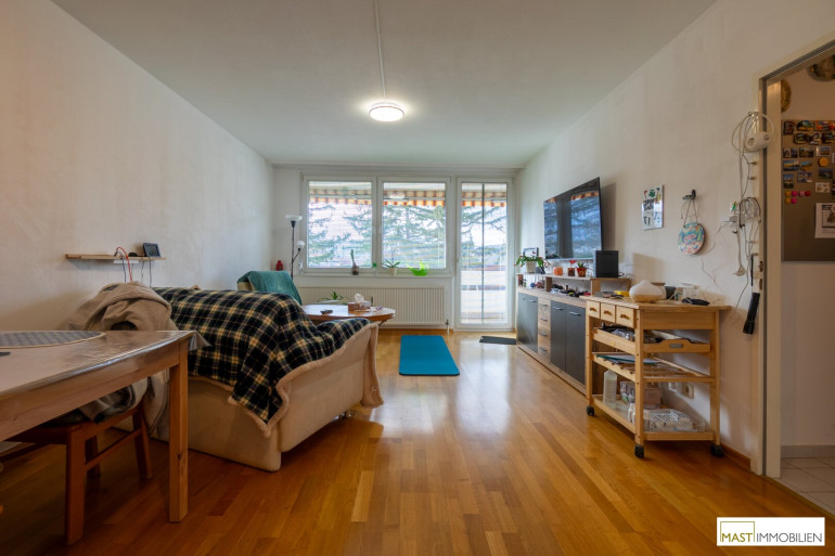 Auf rund 60 m² Wohnfläche erwartet Sie ein durchdachter Grundriss mit angenehmem Wohnkomfort. Das Herzstück der Wohnung bildet der helle Wohnbereich mit direktem Zugang zur ca. 10 m² großen Loggia, die mit einem herrlichen Fernblick begeistert – ein perfekter Ort zum Entspannen und Genießen.