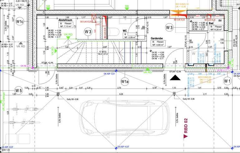 Im EG der Eingangsbereich mit Garderobe, Bad/Raindancedusche, WC-extra, Aufgang in das Obergeschoss.