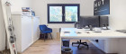 Im ersten Obergeschoss erwartet Sie ein durchdachtes Raumkonzept mit mehreren lichtdurchfluteten Büroräumen. Eine große Küche auch als Besprechungsraum ideal, ein praktischer Abstellraum sowie ein WC vervollständigen diese Etage.