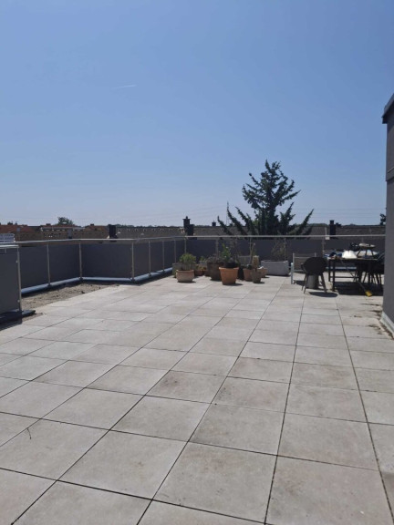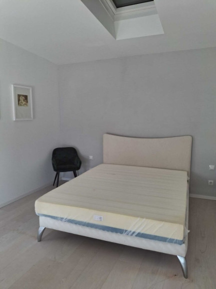 Wenn Sie die offene Treppe ins Obergeschoss nehmen, eröffnet sich Ihnen sofort der herrliche Blich auf die große Dachterrasse. Hier befindet sich ein Schlafzimmer und ein Badezimmer.