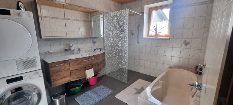- Heizung: Pelletsheizung: EG: großteils Fussbodenheizung, im OG: Heizkörper, Fussbodenheizung in den Vorraumbereichen;