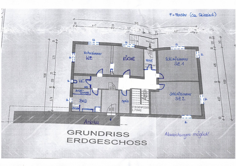 - zusätzlicher Anbau: ca. 90 m²rückseitig für Familienfeiern, Hobby oder Lagermöglichkeiten;