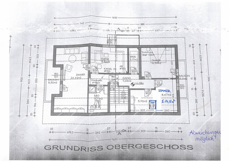 - OG: ca. 87 m², Küche, 3 Zimmer, Bad mit Dusche u. WC, 2 Balkone;