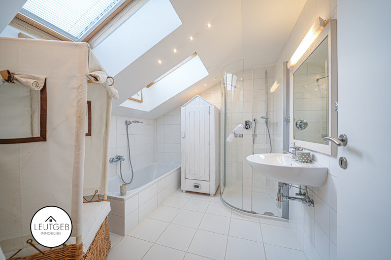 Das helle und stilvoll ausgestattete Badezimmer bietet auf ca. 7 m² sowohl Badewanne als auch Dusche und schafft so eine entspannende Wohlfühlatmosphäre. Ergänzt wird dieser Bereich durch ein separates WC mit ca. 3 m², das zusätzlichen Komfort und Privatsphäre bietet.