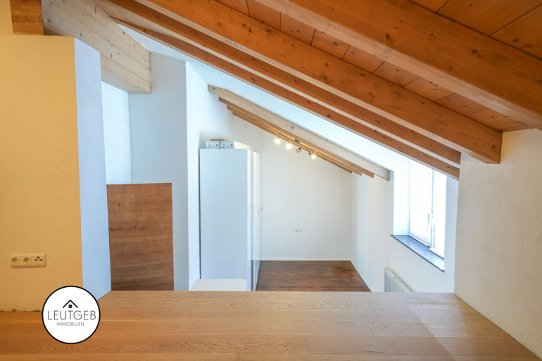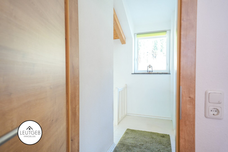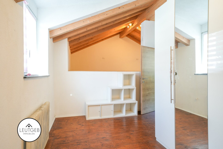 Über den Stiegenaufgang gelangen Sie in das erste Zimmer im Obergeschoss, dass sich ideal als Arbeits-, Kinder- oder Gästezimmer eignet. Von hier aus haben Sie direkten Zugang zu einem westseitig ausgerichteten Balkon mit Blick in den ruhigen Garten. Im Obergeschoss erwarten Sie zwei weitere Zimmer. Eines davon mit offenem Sichtdachstuhl, der dem Raum ein besonderes Wohngefühl verleiht. Durch die unterschiedliche Ausrichtung der Fenster profitieren alle Zimmer von einer großzügigen Belichtung zu jeder Tageszeit. Das kleine Badezimmer im Erdgeschoss verfügt über eine Badewanne, einen Waschtisch und ein WC.