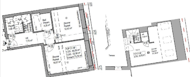 Die Wohnung Top 21 verfügt über 73,16 m² und teilt sich wie folgt auf: