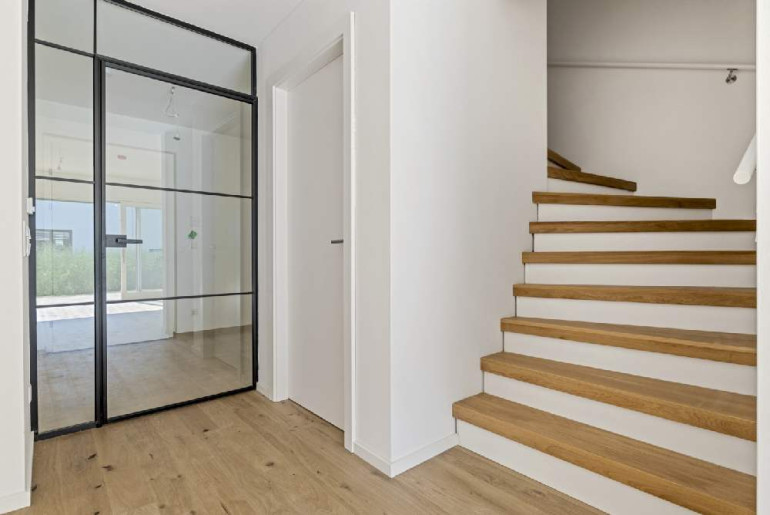 Elegante Parkettböden in allen Wohn- und Schlafräumen, Innentüren weiß matt mit Holzzarge bzw. Glastüren, großzügige Terrasse im Erdgeschoß mit Kaltwasseranschluss und Außenbeleuchtung, Terrasse im Dachgeschoß mit beeindruckender Aussicht, großformatige Fliesen (60 x 60 cm) in den Sanitärbereichen, Badewannen mit Markenarmaturen, bodenbündige Duschen, sämtliche Häuser werden vollständig mit Raffstores ausgestattet und noch vieles mehr...