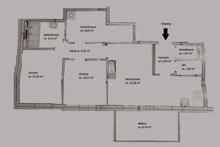 Die Wohnung ist aktuell noch vermietet, Besichtigungstermine sind gerne nach Rücksprache möglich.