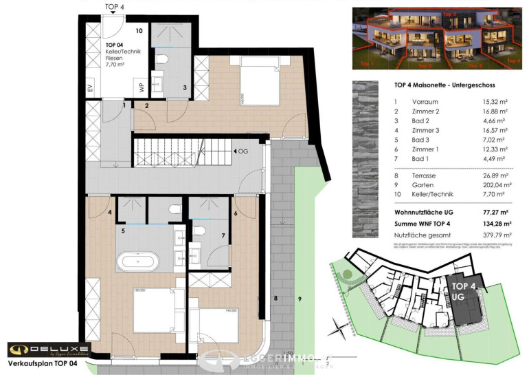 - Sehr energieeffiziente Tiefenerdwärmepumpe je Einheit inkl. Kühlfunktion im Sommer
