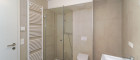 - Großformatige Feinsteinzeugfliesen in den Nassräumen