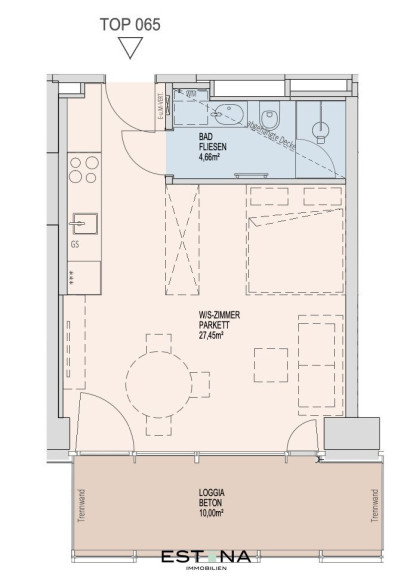 Fliesen, Parkett, Einbauküche, Personenaufzug, Westbalkon, Dusche