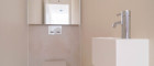Offen geschnittene Grundrisse laden zur Geselligkeit ein, edle Naturholzböden mit langen Dielen verleihen dem Raum zusätzliche Großzügigkeit. Das Smart-Home System steuert das Zuhause auf Knopfdruck: Licht, Jalousie bis hin zur Heizung und Kühlung lassen sich hier koordinieren. Im Bad stehen gleich drei Ausstattungslinien mit unterschiedlichem Feinsteinzeug zur Auswahl: Der handgefertigte Charme von Marrazzis „Rice“, die unvergängliche Schönheit von Florims „Timeless“ Kollektion und die naturbelassene Anmutung der Serie „Pietre di Sardengna“ von Casalgrande Padana. Je nach Ausstattungslinie variieren auch Materialien und Farbe von Armatur, WC, Drückerplatte und Sprossenheizkörper.