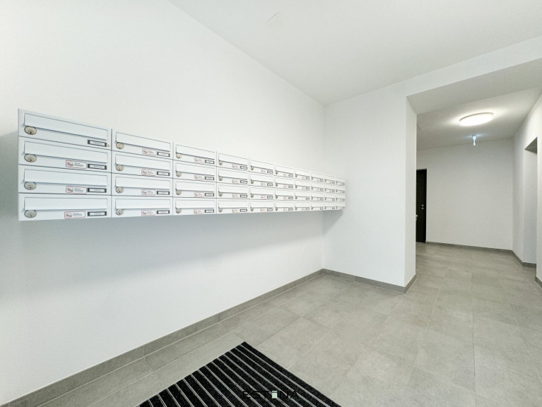 Die Wohnungen verfügen über ein effizientes Heiz- und Temperierungssystem mit Betonkernaktivierung. Es passt sich automatisch den Wetterbedingungen an und wird zentral gesteuert. Elektrisch steuerbare Außenjalousien bieten zusätzlichen Sonnenschutz und Lichtregulierung.