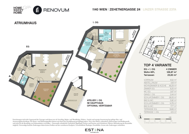 Es besteht die Möglichkeit ein Atelier zusätzlich zu erwerben. Kosten dafür zusätzlich € 50.000,-