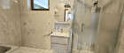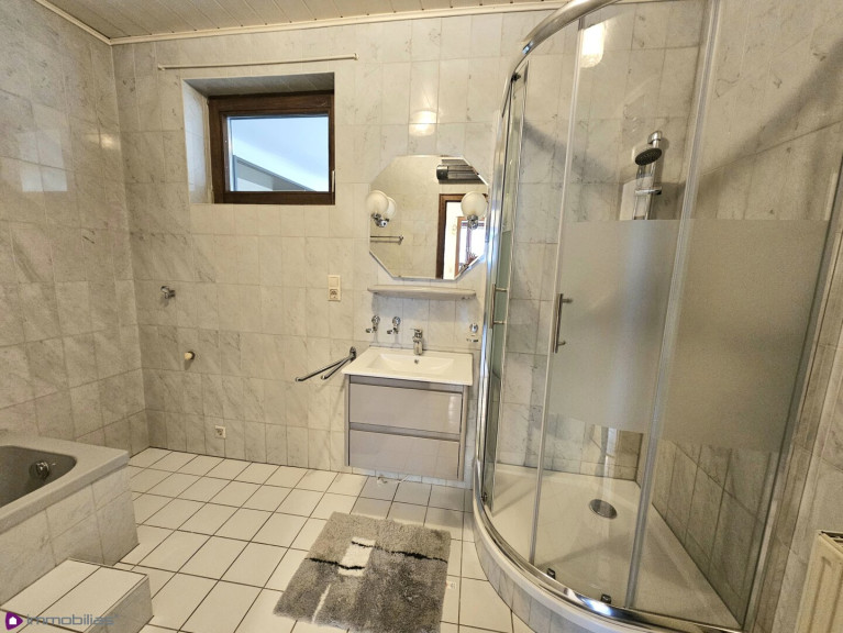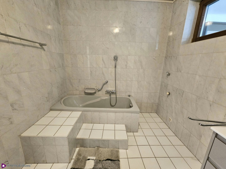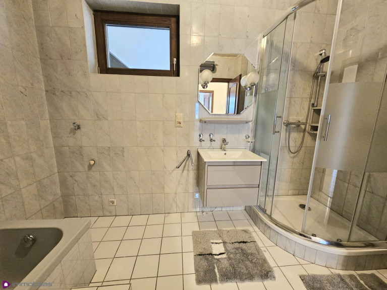 Badezimmer, ca 7,90 m², mit Waschbecken, Badewanne, Dusche, Waschmaschinenanschluss, Fenster zum Entlüften