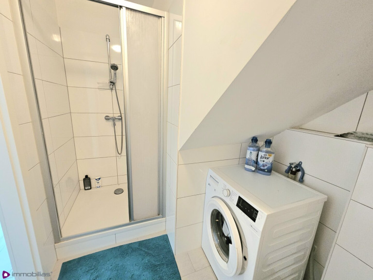 UG: Vorzimmer, kleine Wohnküche, Bad mit Dusche und WC und Waschmaschinenanschluss.