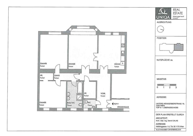 Die 4-Zimmer-Wohnung befindet sich im 3. Wiener Gemeindebezirk im 1. Stock mit Lift.