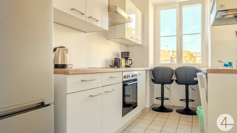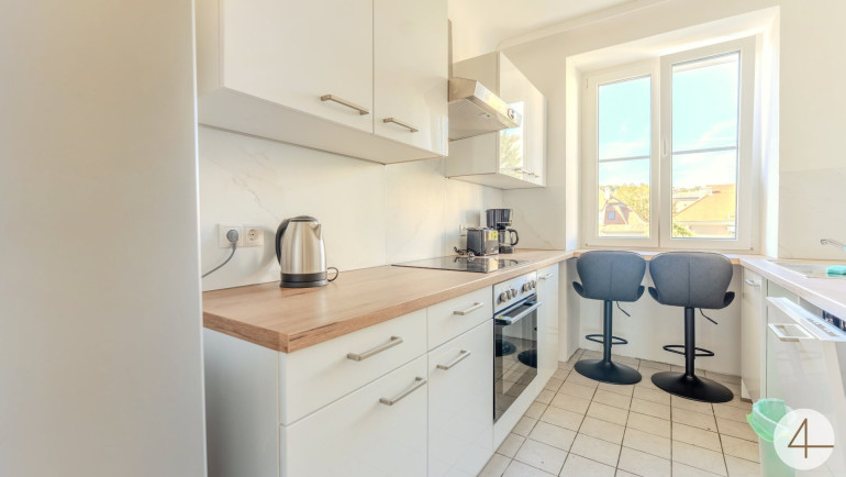 2025 wurde die Wohnung vollständig renoviert, inklusive einer neuen, modernen Küche, wodurch sich das Objekt in einem zeitgemäßen und ausgezeichneten Zustand präsentiert.