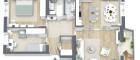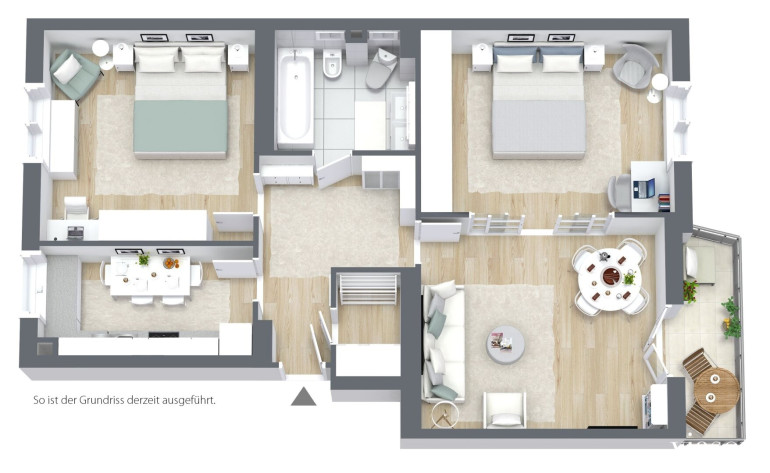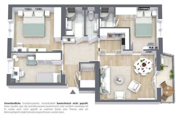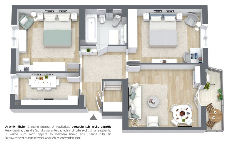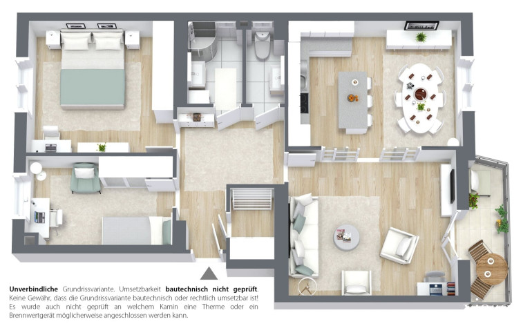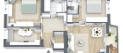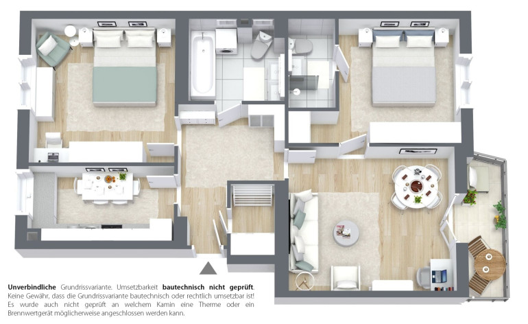 - Die Wohnung bietet viel Potenzial zur individuellen Umgestaltung – unterschiedliche Wohnvarianten (unverbindlich, keine Gewähr) sind in den 3D-Darstellungen ersichtlich