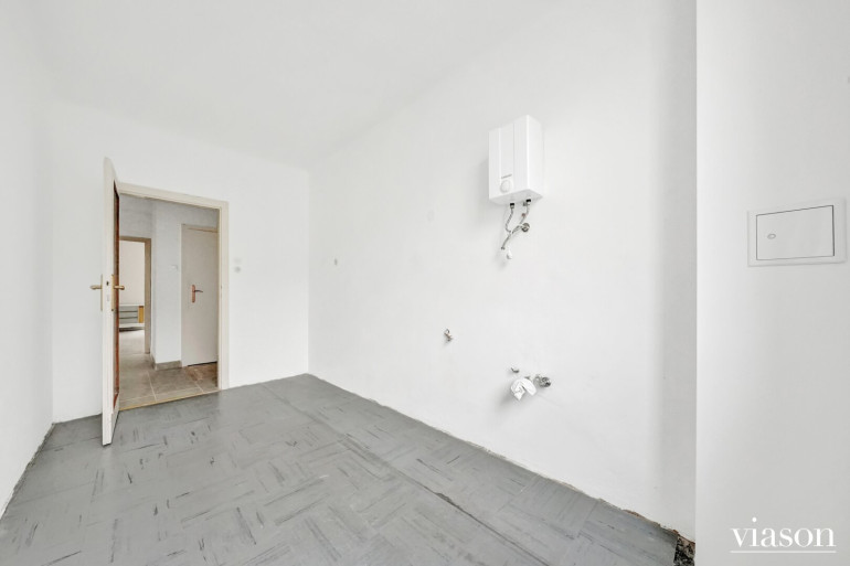 Die separate Küche ist ohne Kücheneinbaugeräte ausgestattet und verfügt über einen Gasanschluss. Zur Wohnung gehören zwei Schlafzimmer sowie ein Wohnzimmer mit direktem Ausgang auf den südseitigen Balkon mitca. 4,74 m², der zum Entspannen im Freien einlädt.
