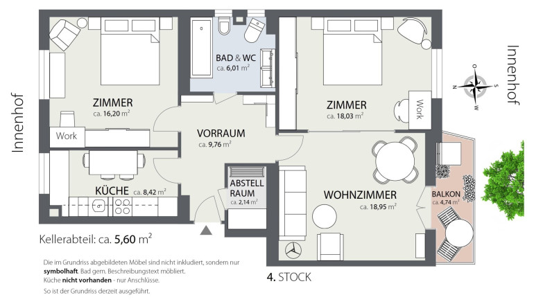 - Ruhige Innenhoflage mit idealer Nord-Süd-Ausrichtung
