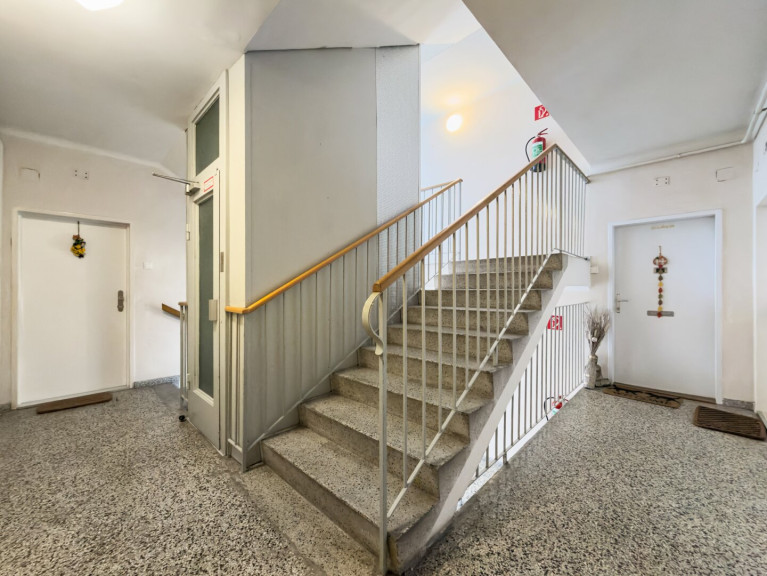Im 2. Liftstock eines gepflegten Wohnhauses aus 1959 gelegen, bietet die Wohnung rund 65,52 m² Wohnfläche sowie eine 4,08 m² große Loggia in Süd/Ost-Ausrichtung. Die Gesamtfläche beträgt somit ca. 69,6 m².